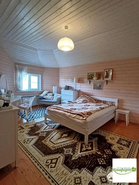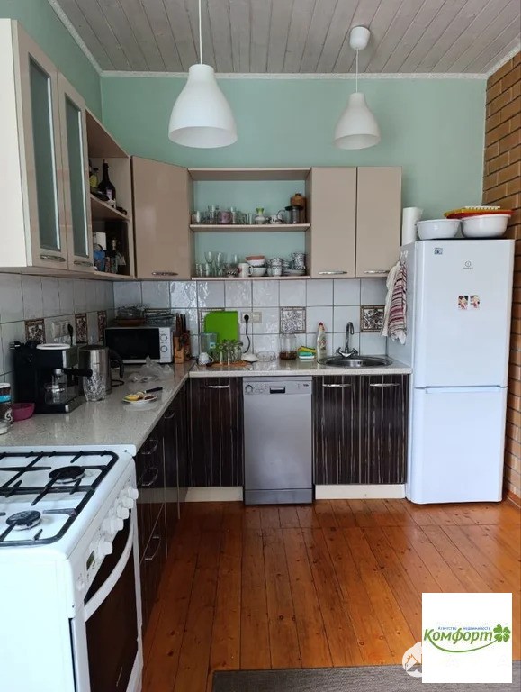 Дом теплый зимой и прохладный летом, установлено и разведено в каждом помещении телевидение. Внутренняя отделка дома выполнена из натуральной вагонки в светлой гамме. Лестница - массив лиственницы. Дом полностью меблирован: встроенная кухня, встроенная бытовая техника, включая посудомоечную машину. Большая часть обстановки и интерьера остается при продаже.
