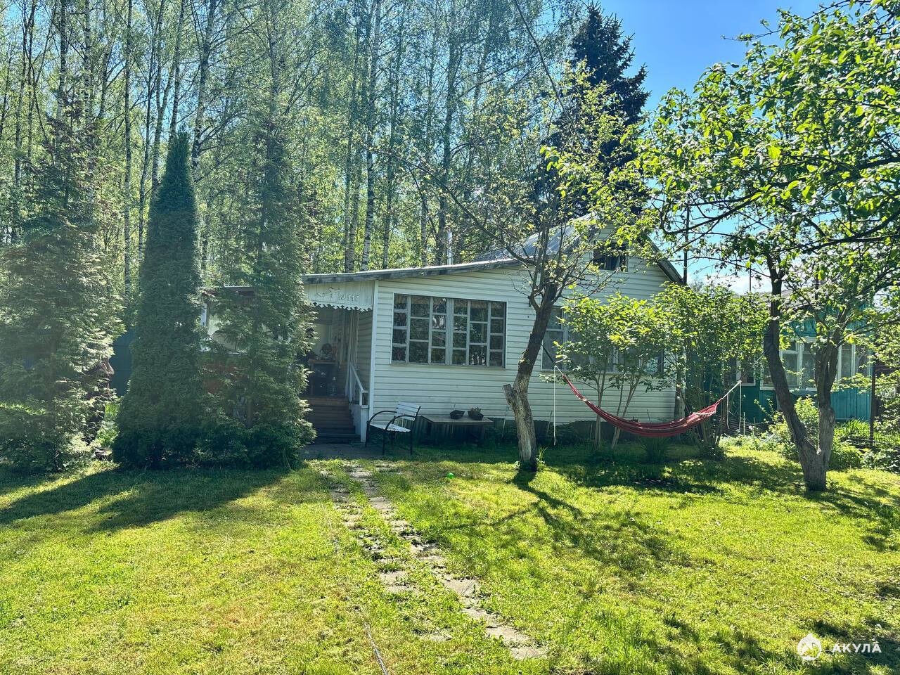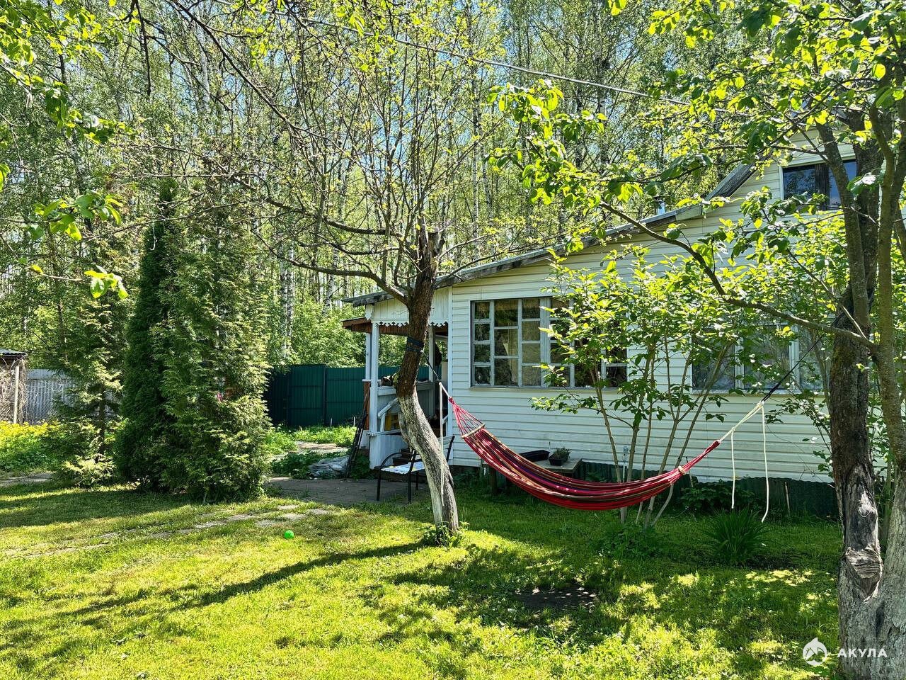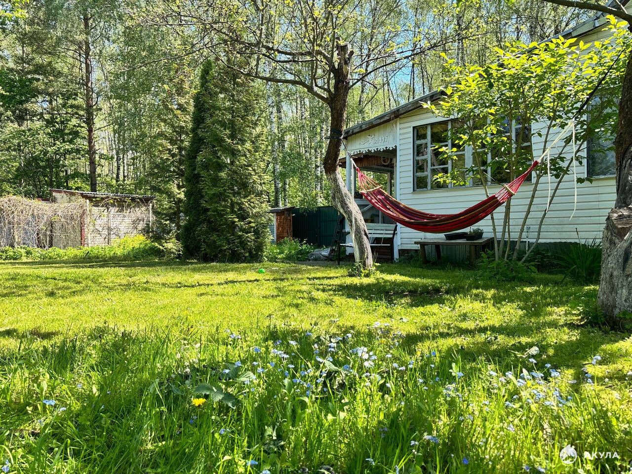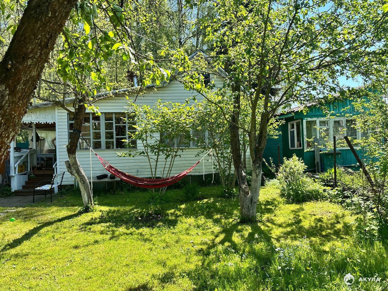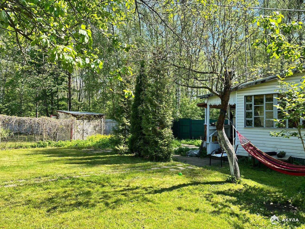 На участке есть плодовые деревья, цветы, полянка из газона. Организована мангальная зона с мангалом и качельками для отдыха (все остается будущим хозяевам).