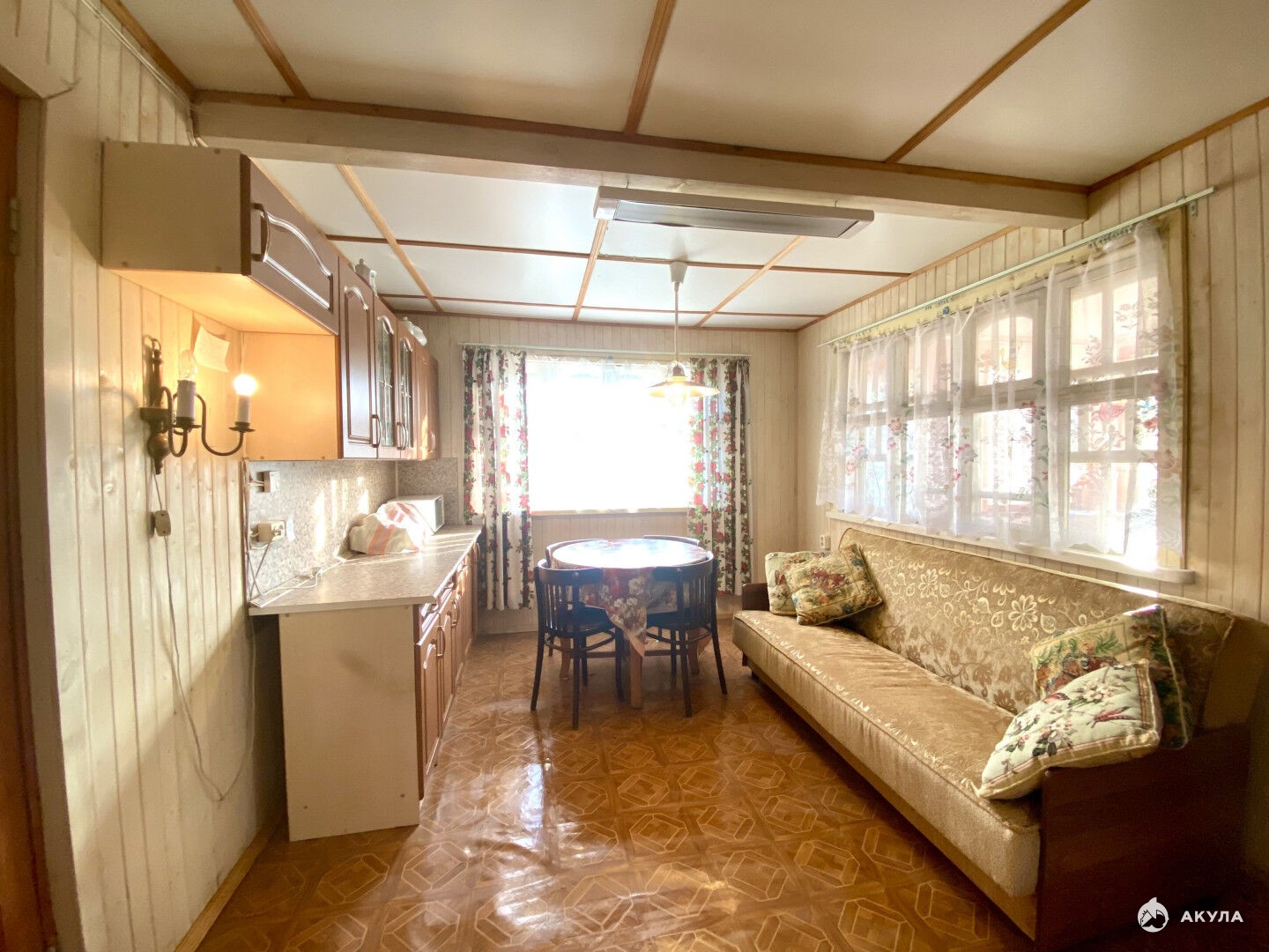 Дом построен из бруса, имеет легкое утепление стен и пола. Внутри отделка из вагонки в спокойных тонах. В двух комнатах есть ИК-обогреватели.
