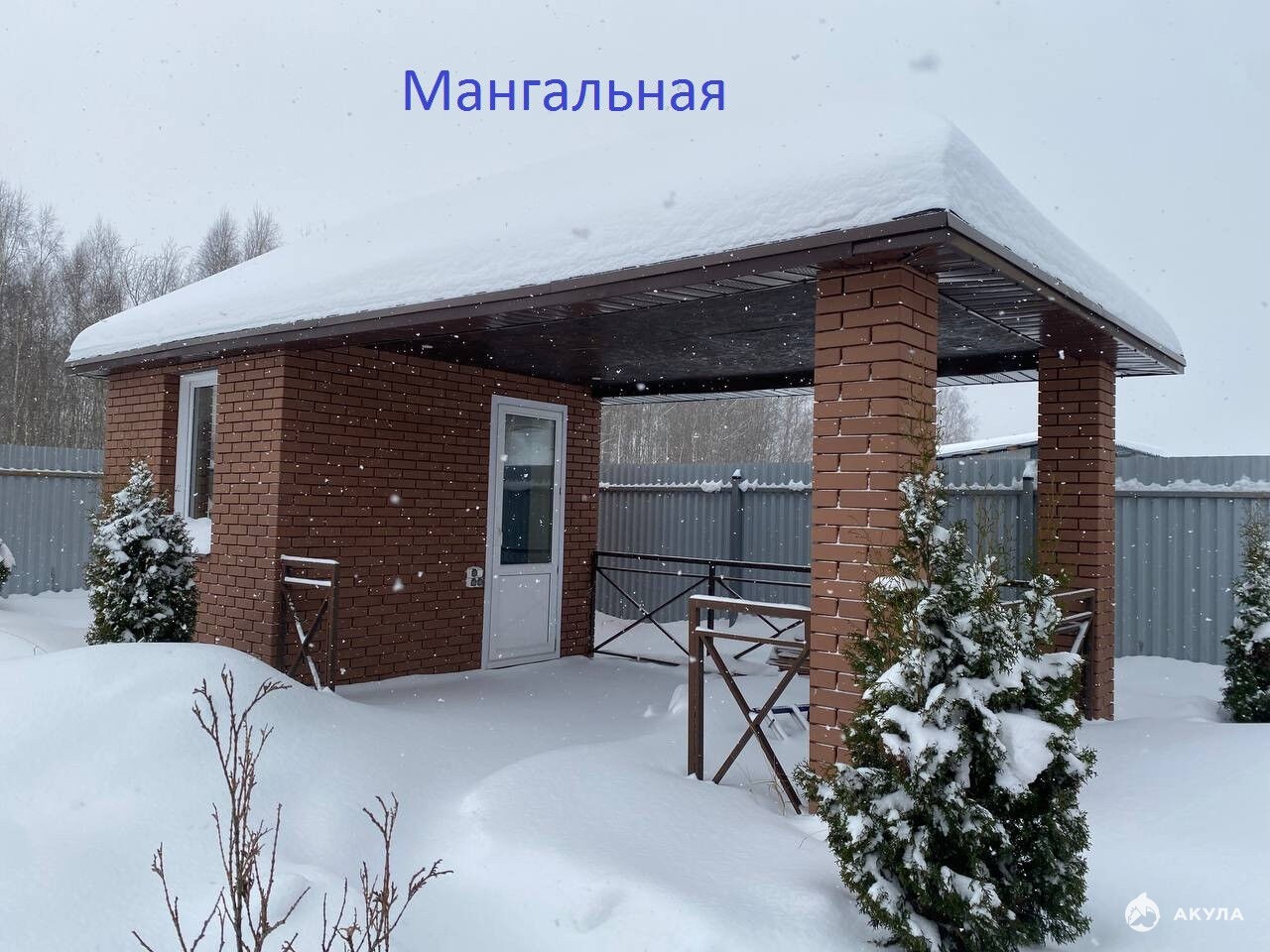 На участке есть отдельно стоящая мангальная зона 30м2. Залита площадка под автомобиль, отлиты дорожки, сделана отмостка. Посажены туи.
