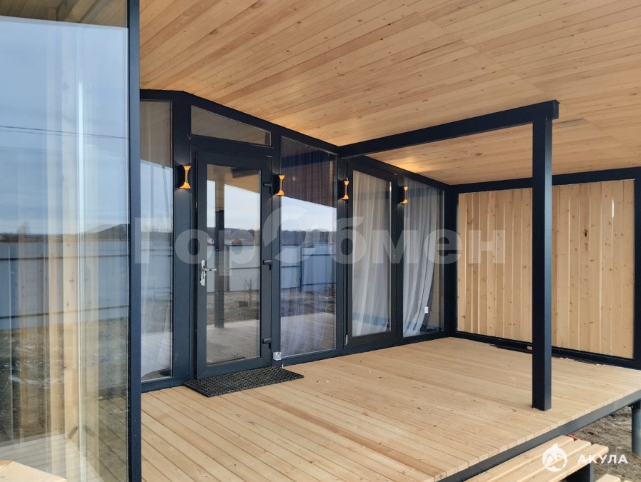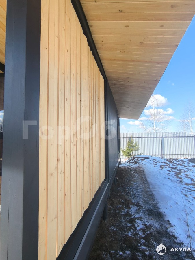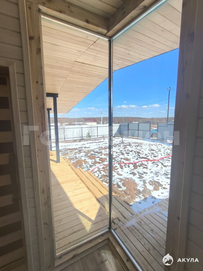 Дом каркасный на свайном фундаменте, утепление стен ППУ (бесшовное утепление). Внешняя и внутренняя отделка - имитация бруса, Безрамное остекление ПВХ.