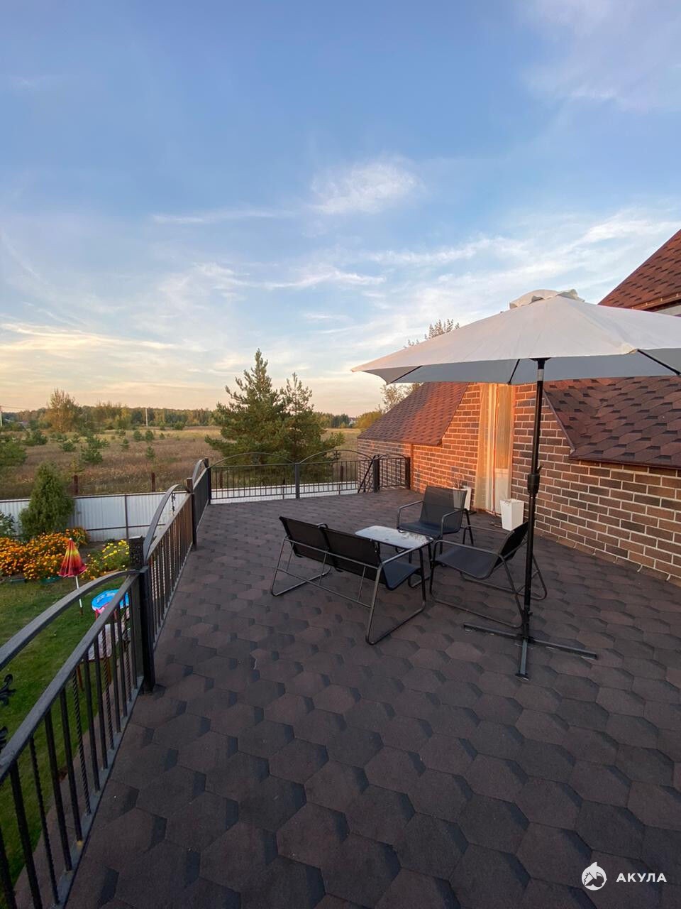 2й этаж Две спальни с выходом из одной на балкон, гардеробная, гостиная с выходом на большую веранду( эксплуатируемая крыша первого этажа)- прекрасная лаундж-зона с шикарным видом на лес.