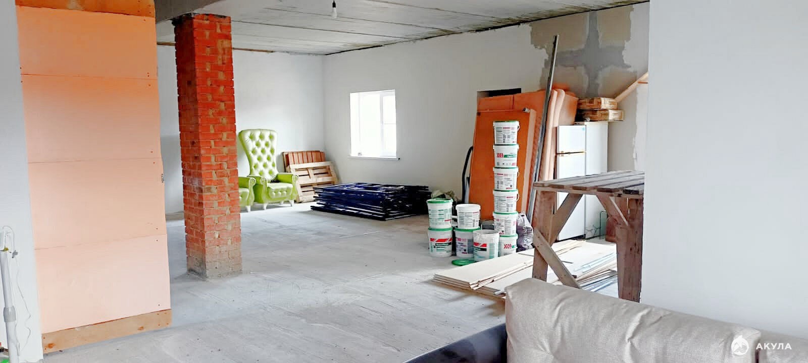 2-этажный просторный коттедж, построен, фасад утеплен, оштукатурен и покрашен. По первому этажу сделан предчистовой ремонт. Сауна полностью готова и в рабочем состоянии. Вам осталось только доделать ремонт по своему вкусу, расставить мебель и начать наслаждаться загородной жизнью.