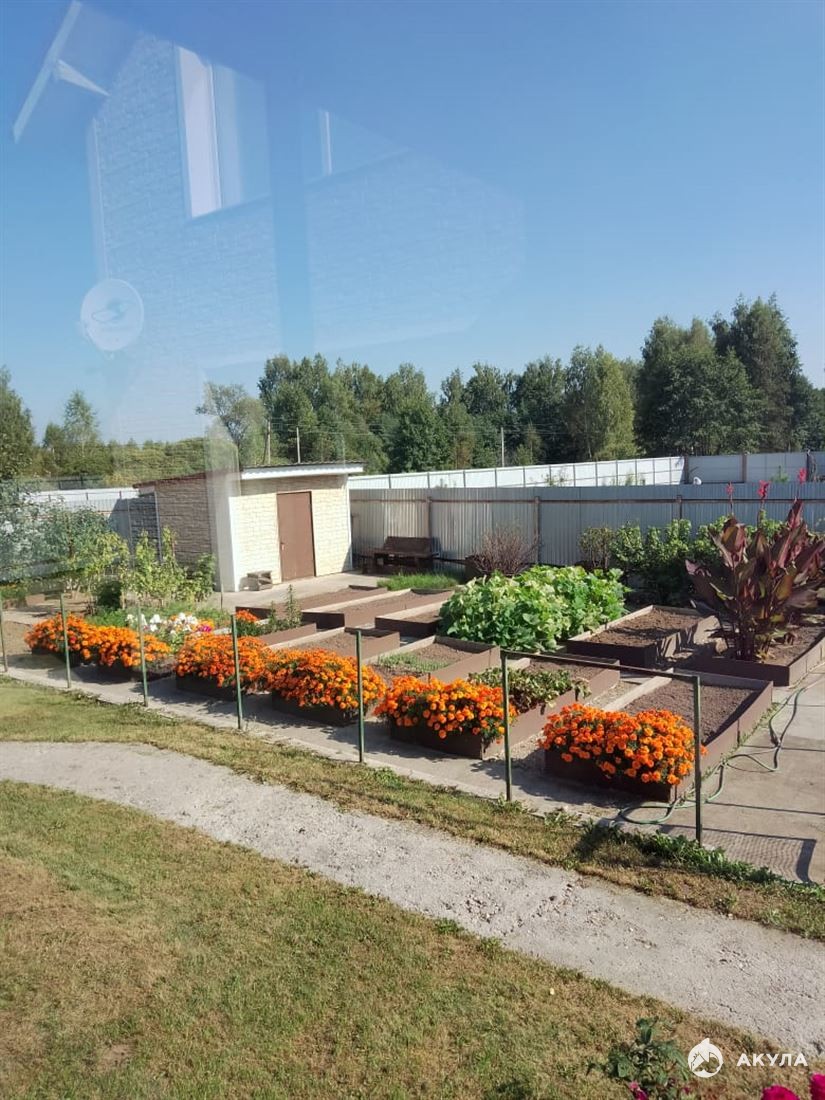 Также на участке огород с оборудованными стационарными грядками и хозяйственным блоком, плодовые деревья.