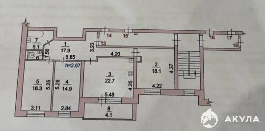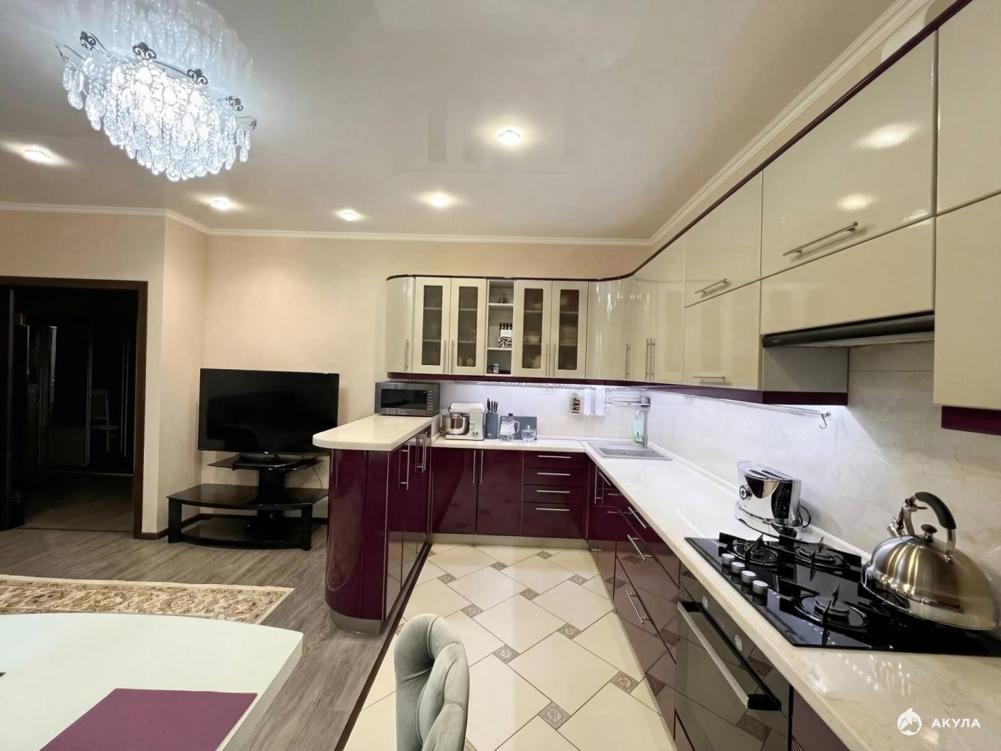 Просторная кухня-гостиная 22, 7 кв с кухонным гарнитуром и встроенной техникой, которые остаются покупателю.